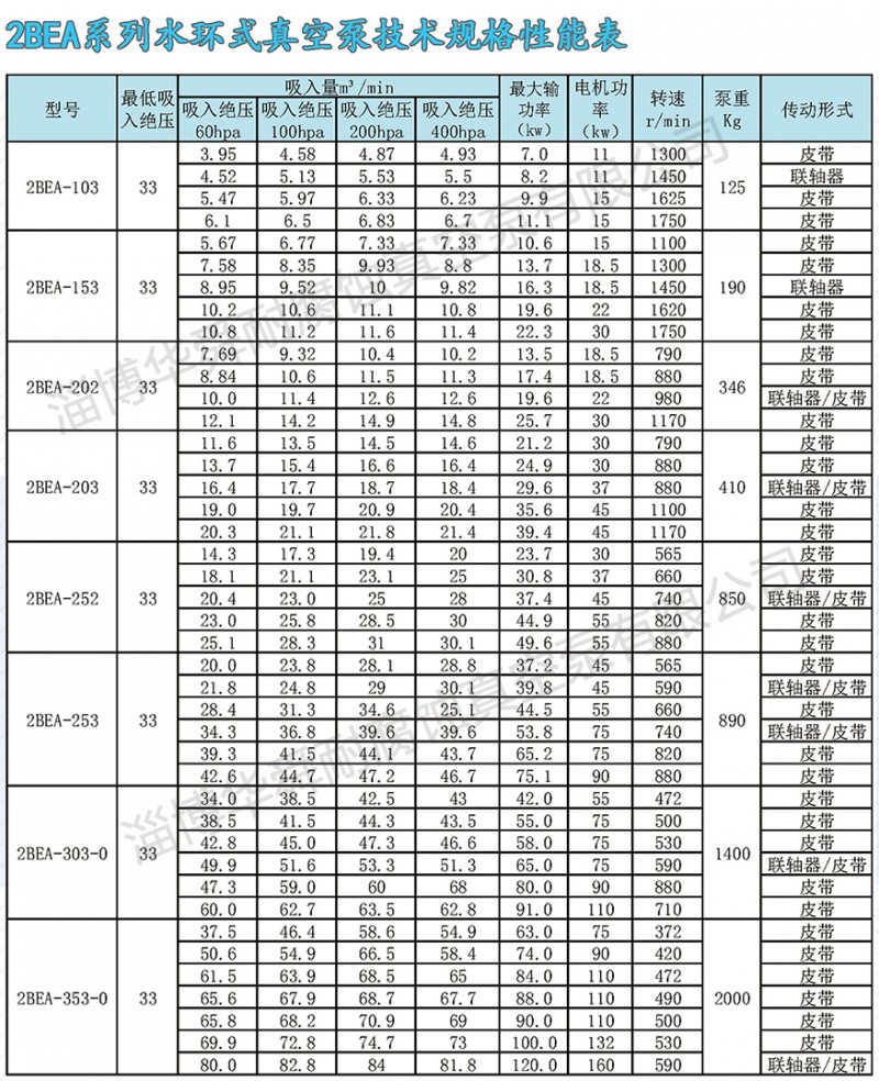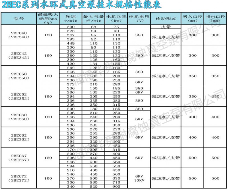 2BE系列水環(huán)真空系及壓縮機(jī),是我公司在多年科研成果和生產(chǎn)經(jīng)驗(yàn)的基礎(chǔ)上,結(jié)合國際同類產(chǎn)品先進(jìn)技術(shù),研制開發(fā)的高效節(jié)能產(chǎn)品,通常用于抽吸不含固體顆粒,不溶于水,無腐蝕性的氣體,以便在密閉容器中形成真空和壓力。通過改變結(jié)構(gòu)材料,亦可用于抽吸腐蝕氣體或腐蝕性液體做工作液。廣泛用于造紙、化工、石化、輕工、制藥、食品、冶金、建材、電韻、煤暖、金屬礦山、化等行業(yè)。本系列泵采用單級單作用的結(jié)構(gòu)形式,具有結(jié)構(gòu)簡單,維修方便,運(yùn)行可,高效節(jié)能的優(yōu)點(diǎn),并能適應(yīng)排水量大,載荷沖擊波動等惡劣工況。我們對關(guān)鍵部件,如分配板,葉輪和系軸進(jìn)行了系列優(yōu)化設(shè)計(jì),簡化了結(jié)構(gòu),提高了性能,實(shí)現(xiàn)節(jié)能。采用球墨鑄鐵或焊接葉輪,葉片一次沖壓成形,型線合理:輪轂全部加工,從根本上解決了動平衡問題。葉輪與系軸采用熱裝過盈配合,性能可靠,運(yùn)行平穩(wěn)。葉輪焊接后,整體進(jìn)行熱處理,使葉片具有良好的韌性,葉片的抗沖擊,抗折彎能力得以根本保證,能適應(yīng)載荷沖擊波動等惡劣工況。2BE系列泵,自帶氣水分離器,多位置設(shè)有排氣口,泵設(shè)有排氣檢修口,葉輪與分配板間通過定位軸承兩娉壓益調(diào)整,安裝使用方便,操作簡單,便于維修。